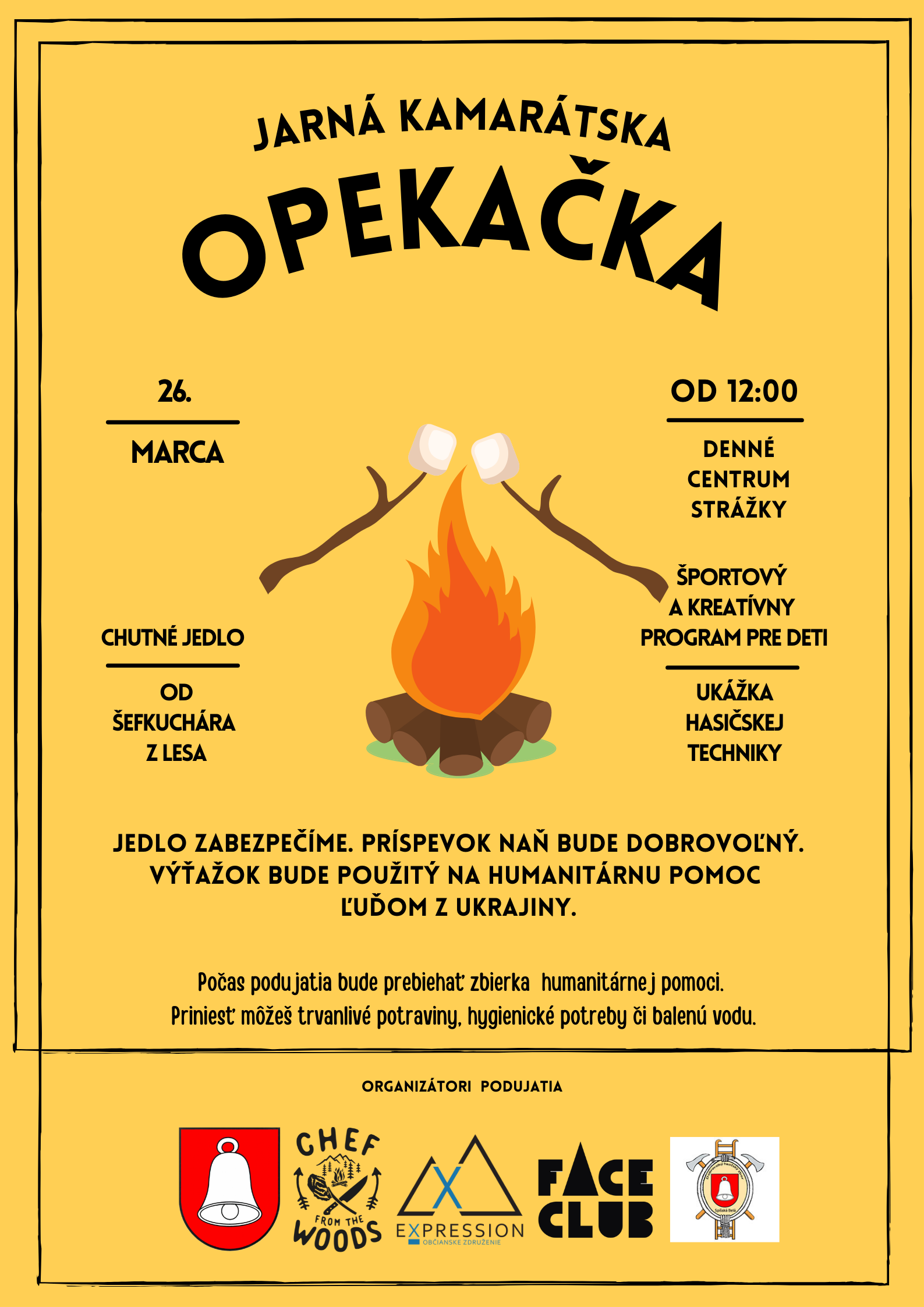 Pozývame vás na jarnú opekačku, ktorá sa uskutoční už budúcu sobotu 26.3.2022  od 12:00 v priestoroch Denného centra v Strážkach.